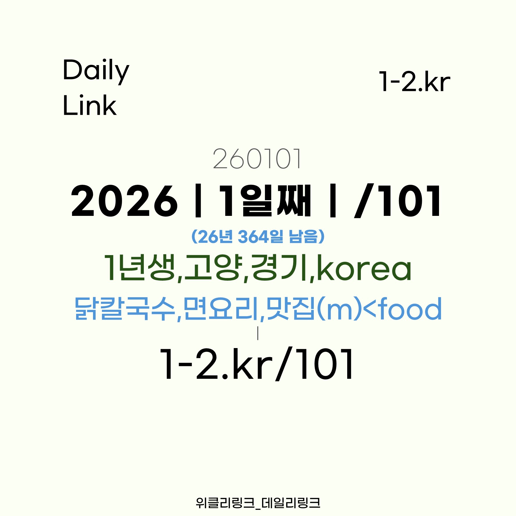 [1-2.kr/101] 데링101 | #1년생,고양,경기<korea_#닭칼국수,면요리,맛집(m),<food_(260101)