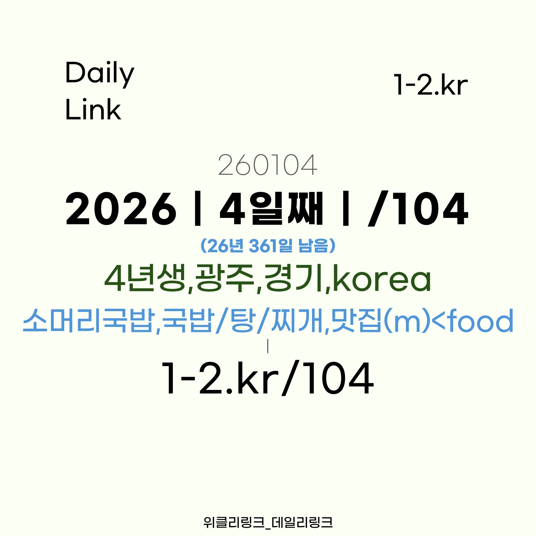 [1-2.kr/104] 데링104 | #4년생,광주,경기<korea_#소머리국밥,국밥/탕/찌개,맛집(m),<food_(260104)