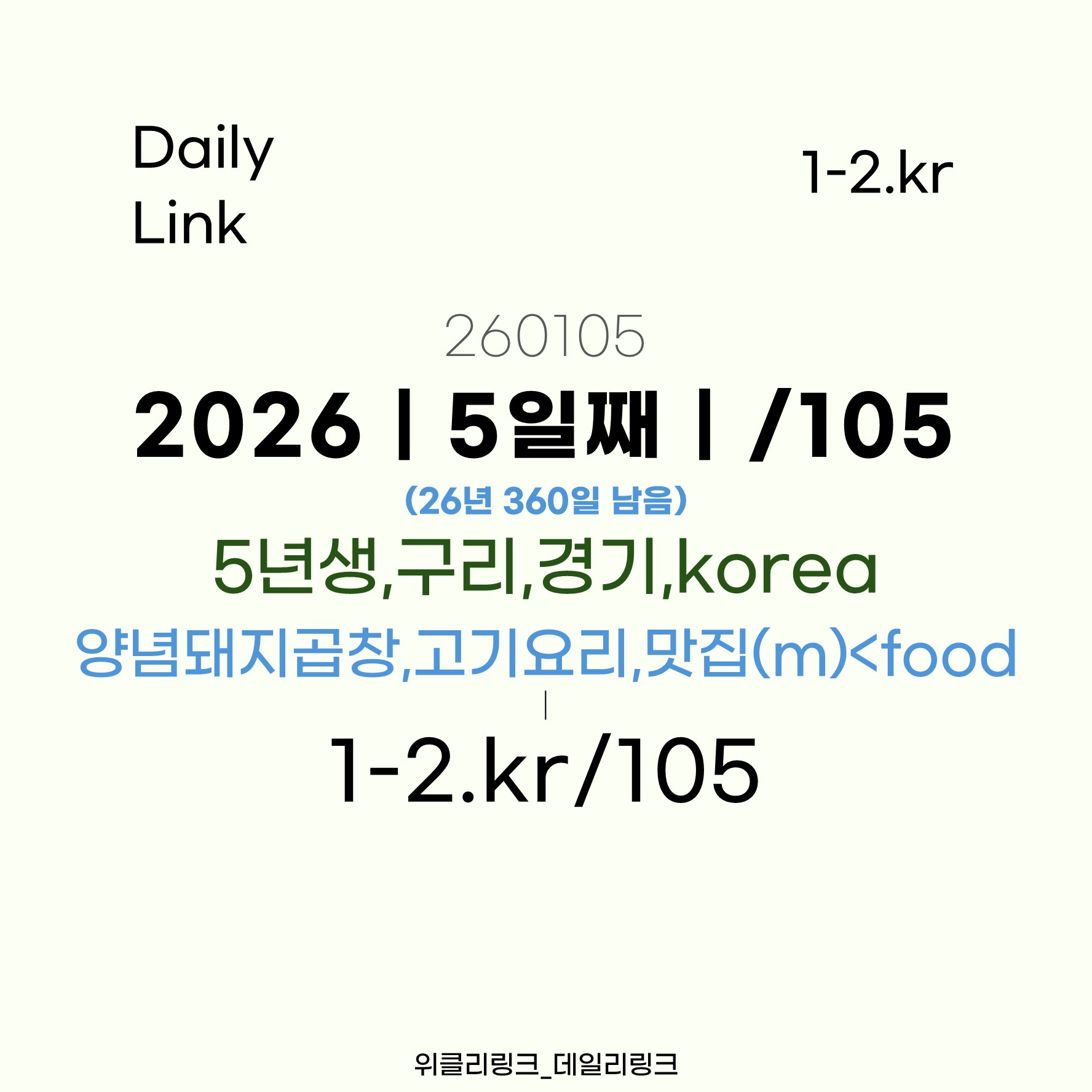 [1-2.kr/105] 데링105 | #5년생,구리,경기<korea_#양념돼지곱창,고기요리,맛집(m),<food_(260105)