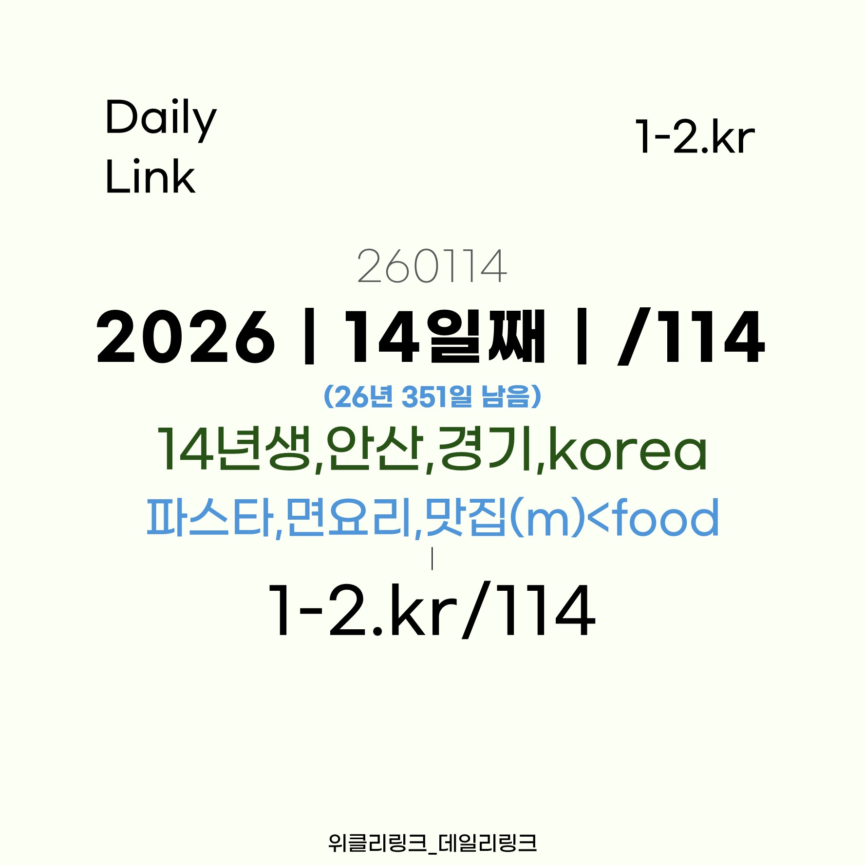 [1-2.kr/114] 데링114 | #14년생,안산,경기<korea_#파스타,면요리,맛집(m),<food_(260114)