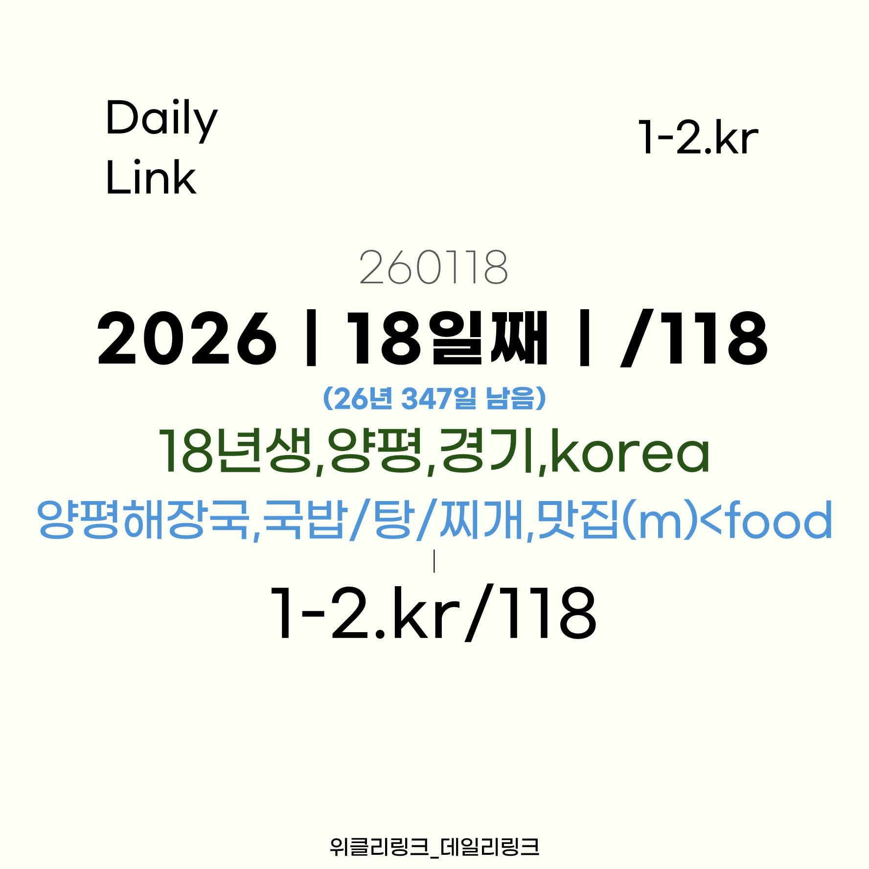 [1-2.kr/118] 데링118 | #18년생,양평,경기<korea_#양평해장국,국밥/탕/찌개,맛집(m),<food_(260118)