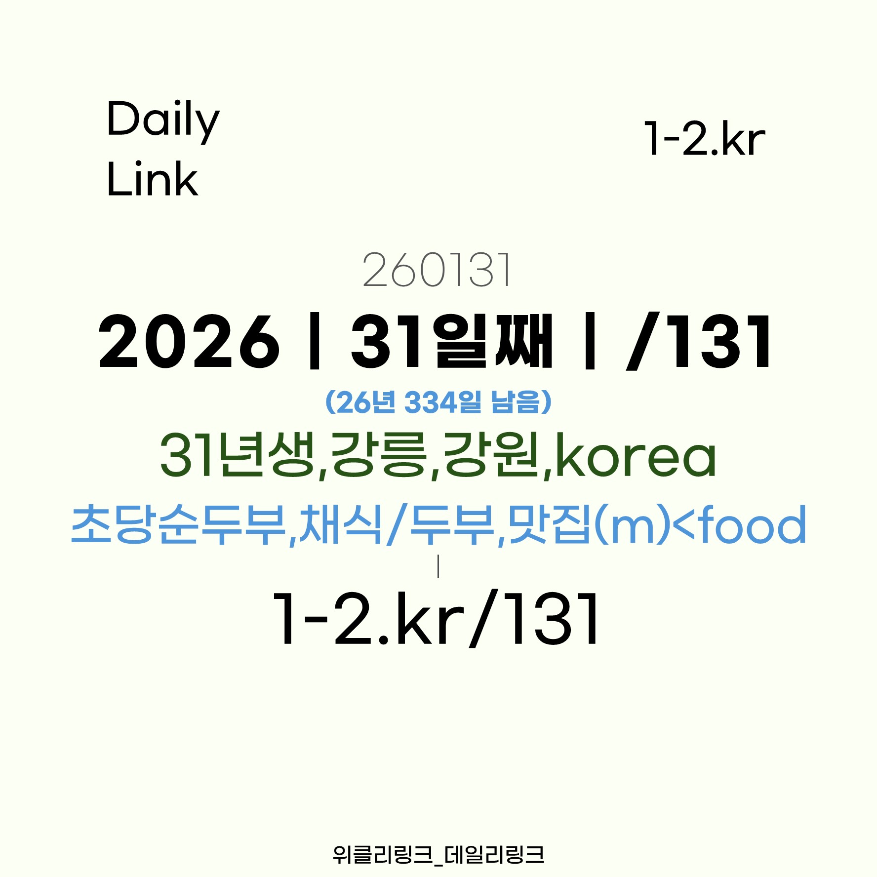 [1-2.kr/131] 데링131 | #31년생,강릉,경기<korea_#초당순두부,채식/두부,맛집(m),<food_(260131)