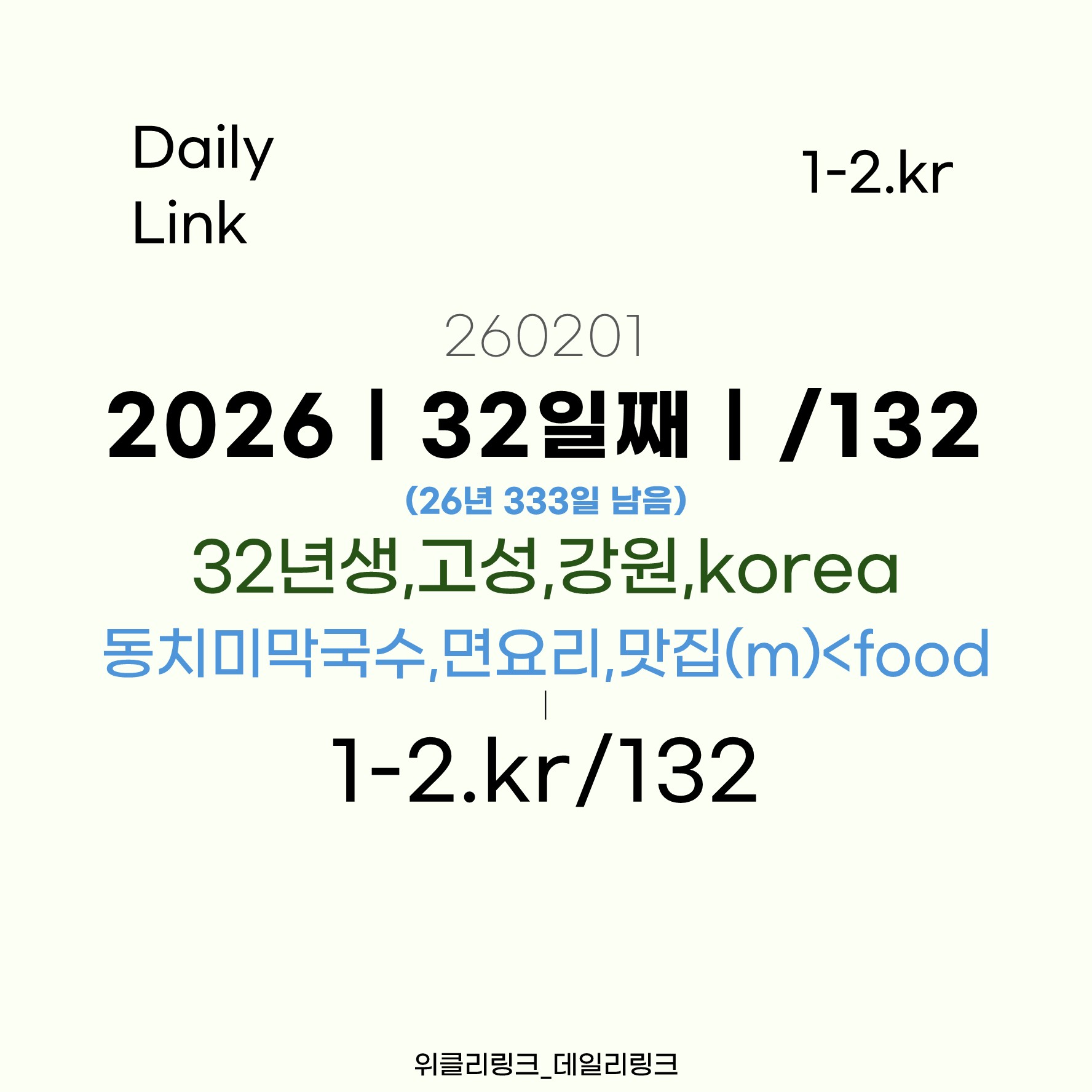 [1-2.kr/132] 데링132 | #32년생,고성,강원<korea_#동치미막국수,면요리,맛집(m),<food_(260201)