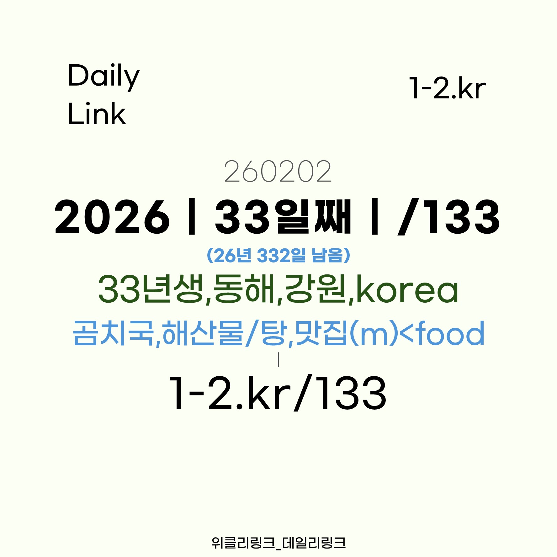 [1-2.kr/133] 데링133 | #33년생,동해,강원<korea_#곰치국,해산물/탕,맛집(m),<food_(260202)