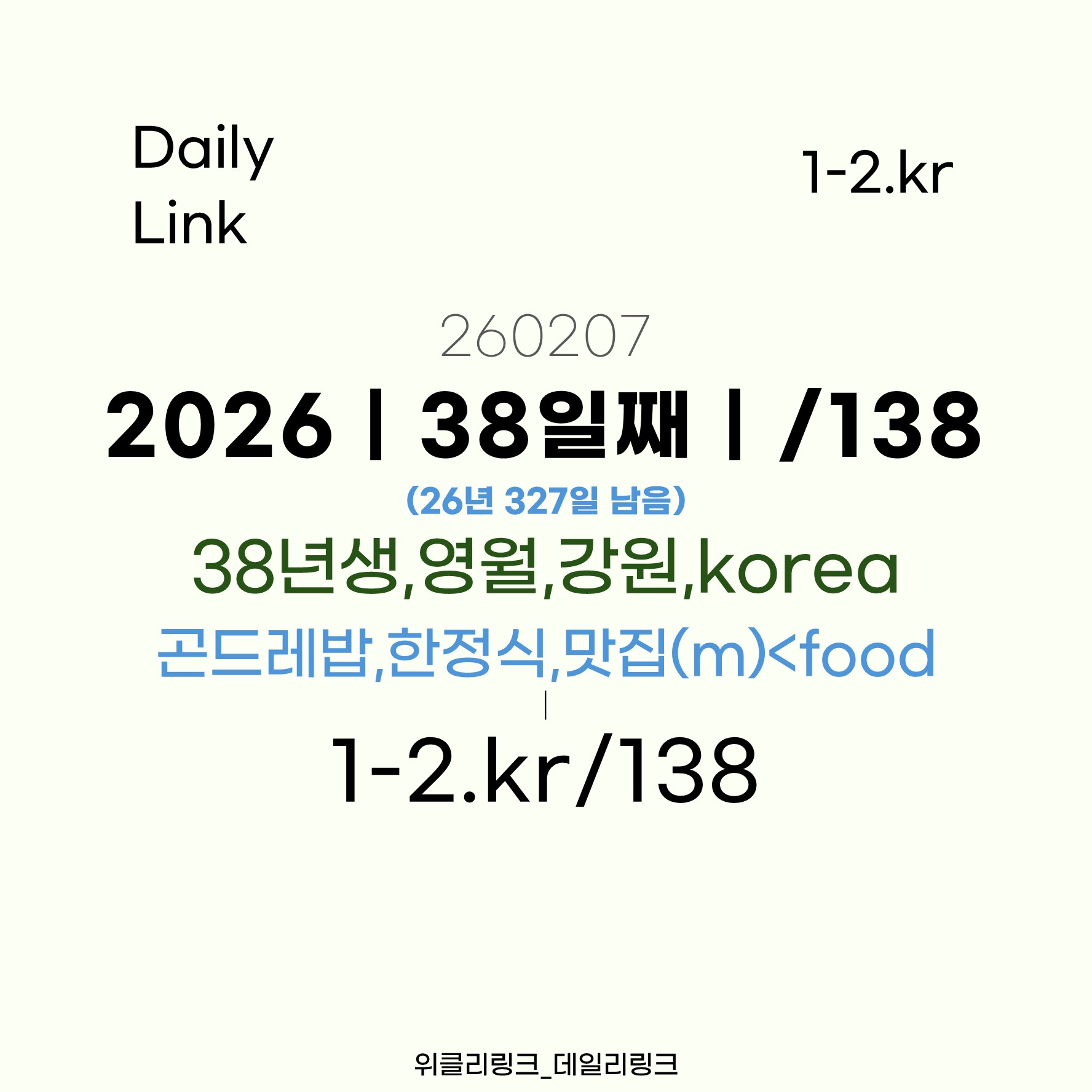[1-2.kr/138] 데링138 | #38년생,영월,강원<korea_#곤드레밥,한정식,맛집(m),<food_(260207)