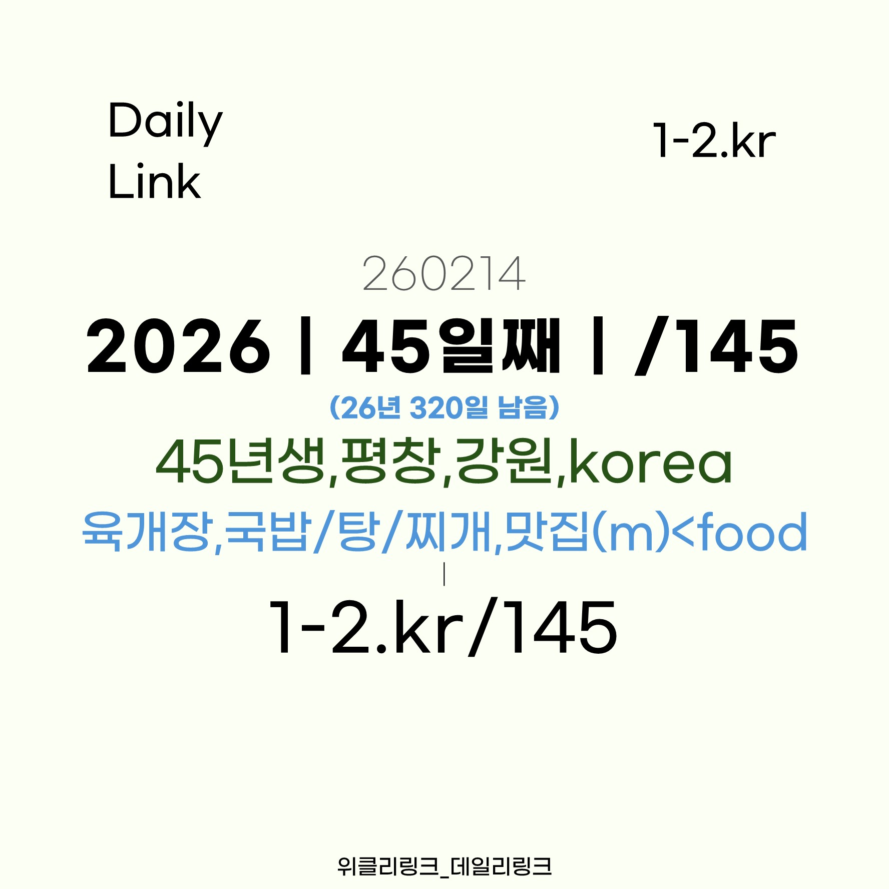 [1-2.kr/145] 데링145 | #45년생,평창,강원<korea_#육개장,국밥/탕/찌개,맛집(m),<food_(260214)