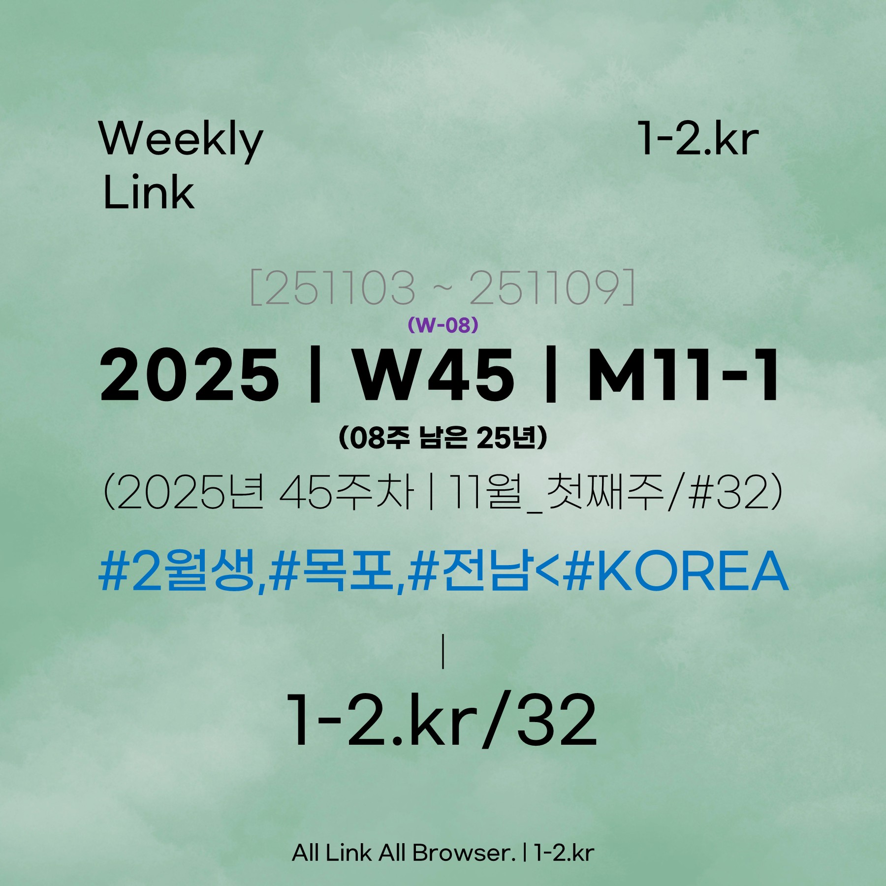 [2025 | W45/(W-08) | M11-1] 11월 첫째주 ('25-45주차)위클리링크_(251103) | 1-2.kr/32|