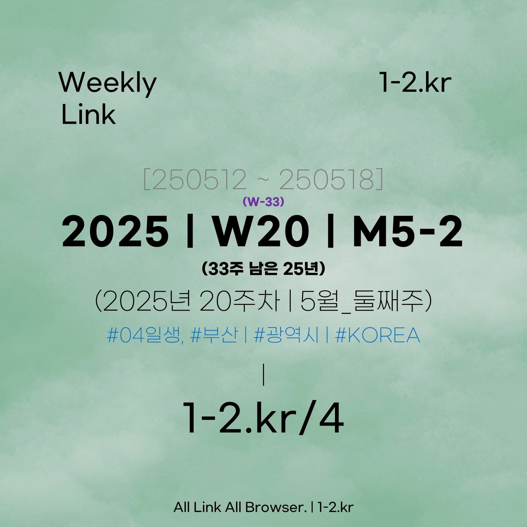 [2025 | W20/(W-33) | M5-2] 5월 둘째주 ('25-20주차)위클리링크_(250512) | 1-2.kr/4